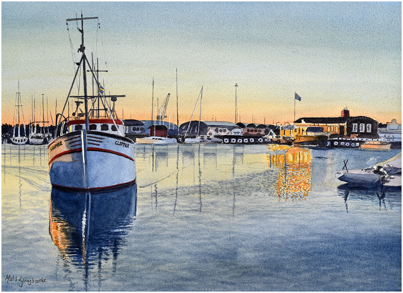 I hamn Varberg, akvarell 58x76 cm